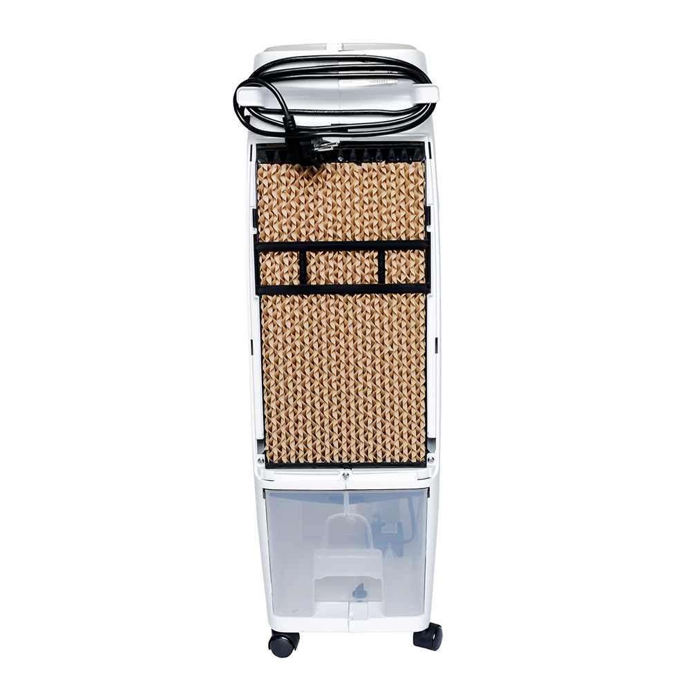 охладитель-увлажнитель воздуха, обслуживаемая площадь 30 кв. м, производительность 833 мл/ч, тип вентилятора: центробежный, объем резервуара для воды 6.5 л, расход воды 800 мл/ч, уровень шума 40 дБ