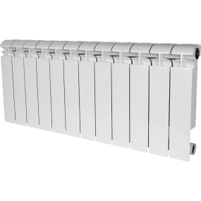 секционный, материал: биметаллические, подключение: боковое, межосевое расстояние 35 см, число секций: 12, диаметр подключения: 1 дюйм, ширина одной секции 8,4 см, макс. рабочее давление 25 бар, литье под давлением, глянцевое покрытие, макс. рабочая температура 110°C