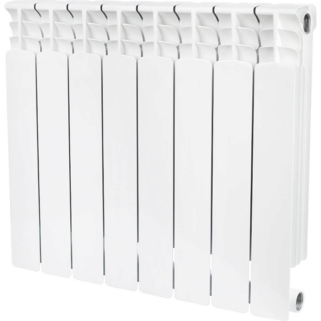 секционный, материал: биметаллические, подключение: боковое, межосевое расстояние 50 см, число секций: 8, диаметр подключения: 1 дюйм, ширина одной секции 8 см, макс. рабочее давление 20 бар, литье под давлением, глянцевое покрытие, макс. рабочая температура 135°C