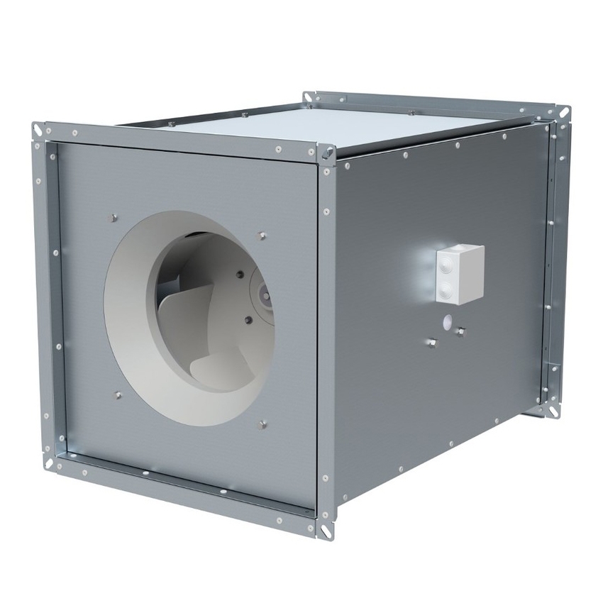 канальный квадратный вентилятор, максимальный расход воздуха 5 400 куб. м/ч, максимальный располагаемый напор 1 260 Па, шумоизоляция, взрывозащищенный, степень защиты: IP54, форма: квадратная